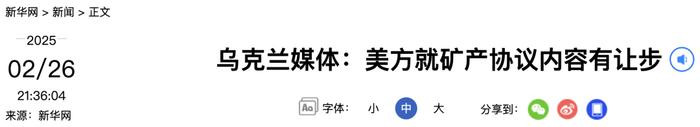 乌克兰媒体:美方就矿产协议内容有让步